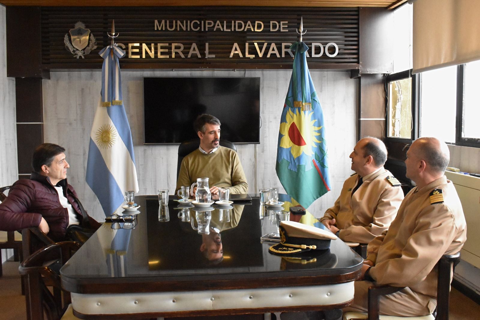 El Intendente Municipal de General Alvarado, Sebastián Ianantuony, junto al Secretario de Seguridad MGA, Paulo Rodríguez, recibió este miércoles 13 a las máximas autoridades zonales de la Prefectura Naval Argentina para dialogar sobre la seguridad costera.