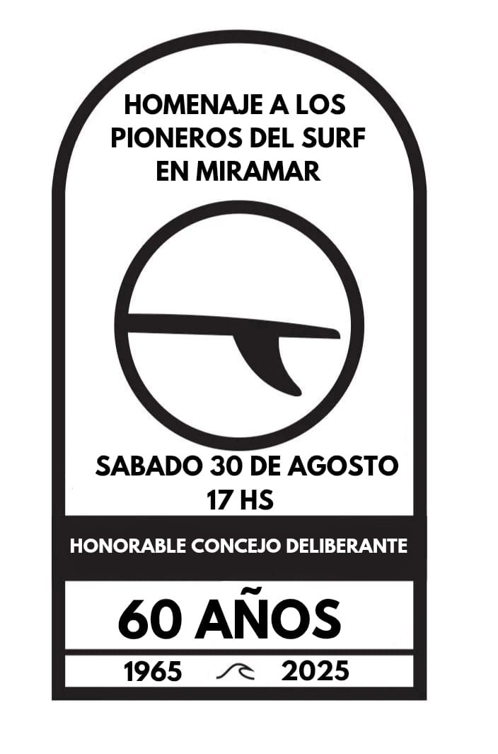 El próximo sábado 30 de Agosto a las 17.00 hs, el H. Concejo Deliberante de General Alvarado (calle 28 Nº 1090, Miramar) rendirá un merecido homenaje a los pioneros del surf de nuestra ciudad, quienes hace seis décadas dieron sus primeras remadas en estas costas, abriendo camino a un deporte que hoy forma parte de la identidad local.