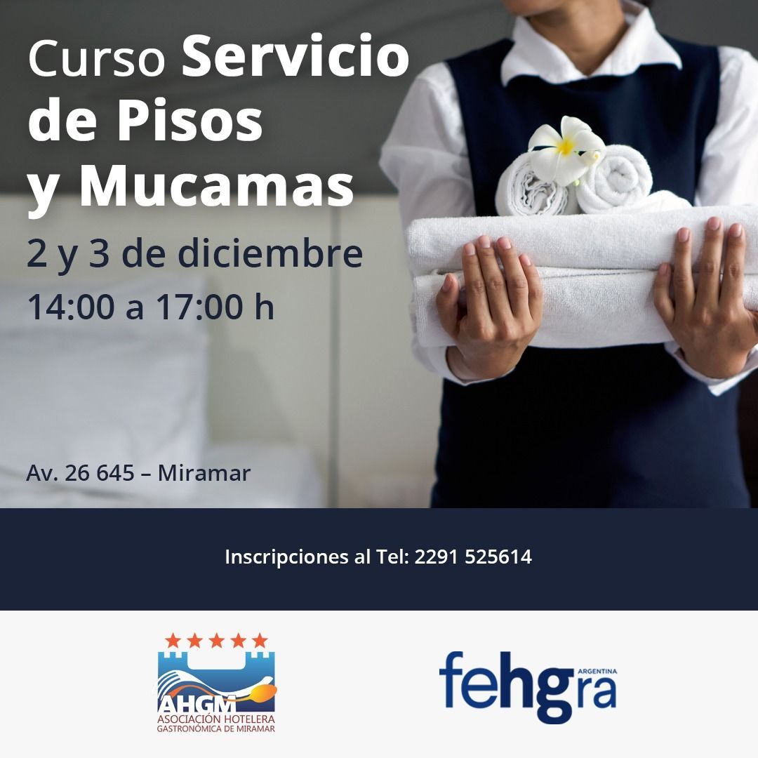 La Asociación Hotelera Gastronómica de Miramar en conjunto con FEHGRA realizara un curso de “SERVICIO DE PISO Y MUCAMA” los días 02 y 03 de Diciembre, de 14.00 a 17.00 hs.