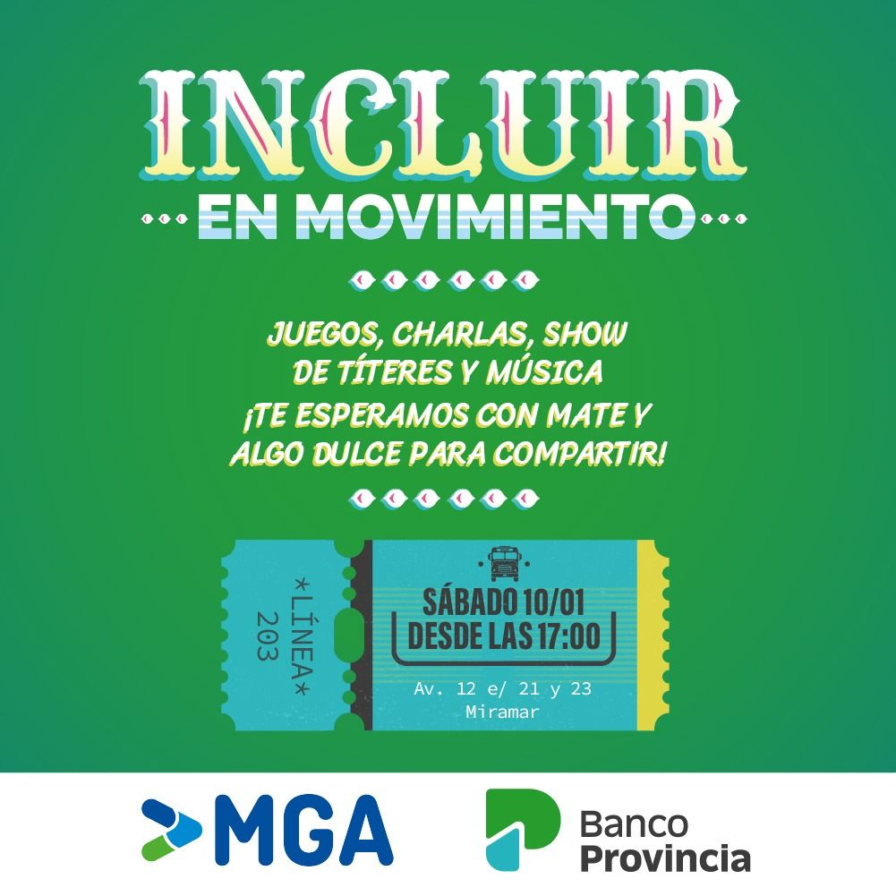 Mañana, sábado 10 de Enero, de 17.00 a 20.00 hs., se presenta frente al mar (Av. 12 entre 21 y 23) el móvil de “Incluir en Movimiento”, una iniciativa del Banco de la Provincia de Buenos Aires que llega para que disfrutes y aprendas.