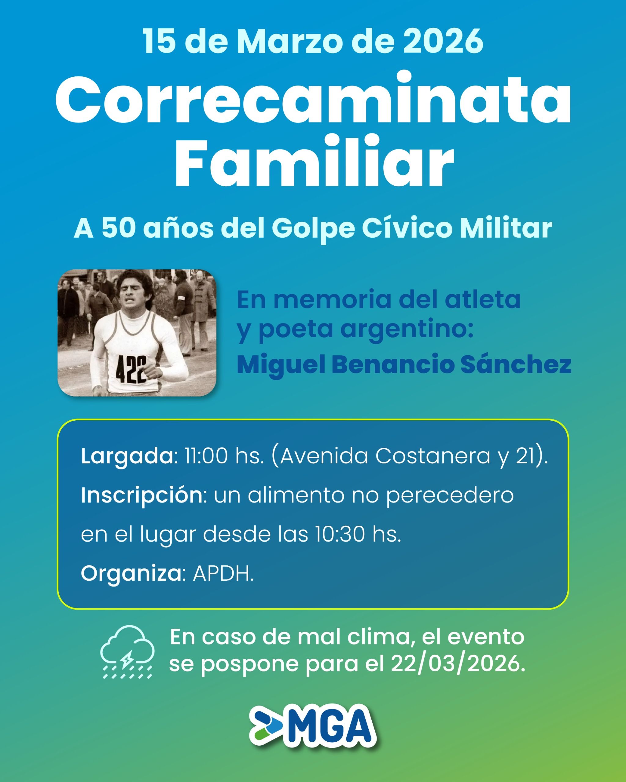 En el marco de los 50 años del Golpe Cívico Militar, te invitamos a participar de esta jornada deportiva y conmemorativa, en memoria del atleta y poeta argentino Miguel Benancio Sánchez.